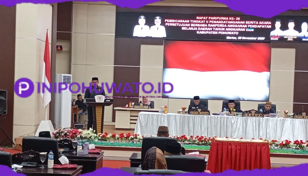 Laporan tersebut merupakan bagian dari agenda Rapat Paripurna ke-28, pembicaraan tingkat II, terkait penandatanganan berita acara persetujuan bersama Ranperda Anggaran Pendapatan dan Belanja Daerah (APBD) Tahun Anggaran 2026 Kabupaten Pohuwato.