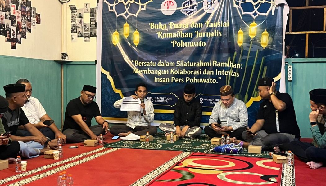 INIPOHUWATO.ID – Ketua DPRD Kabupaten Pohuwato, H. Beni Nento, menghadiri kegiatan buka puasa bersama yang diinisiasi oleh gabungan organisasi wartawan di Pohuwato, yakni Aliansi Jurnalis Pohuwato (AJP), Pro Jurnalismedia Siber (PJS), dan Himpunan Jurnalis Panua (HJP), Jumat (13/03/2026) di Warkop Eighteen Marisa.