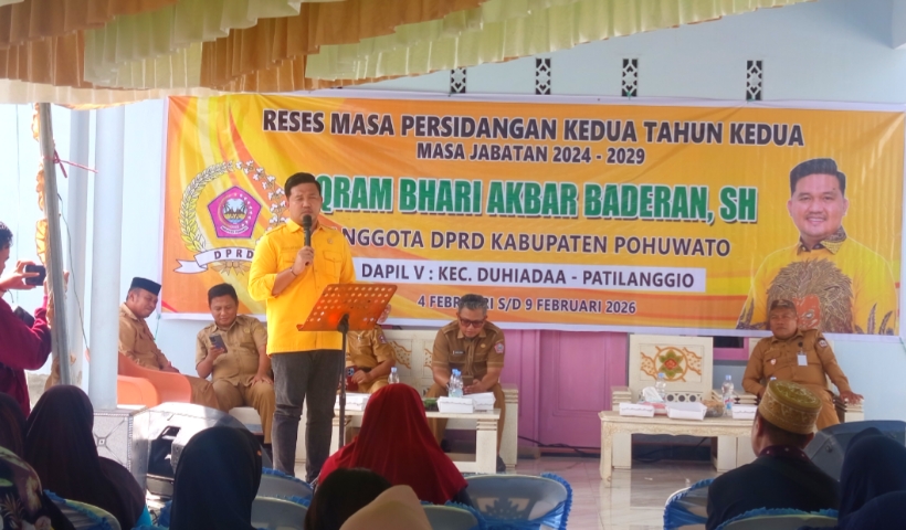 INIPOHUWATO.ID – Ketua Fraksi Partai Golkar DPRD Kabupaten Pohuwato, Iqram Bhari Akbar Baderan, melaksanakan Reses masa persidangan kedua Tahun kedua di Desa Bulili, Kecamatan Duhiadaa, Senin (9/2/2026).