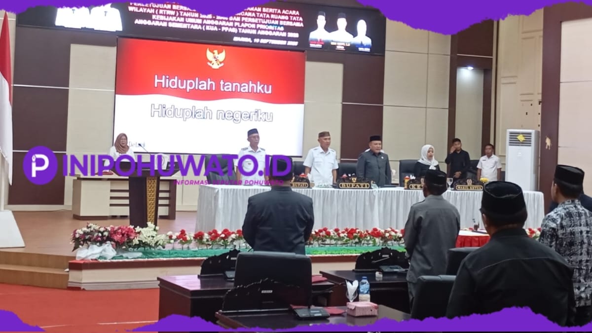 INIPOHUWATO.ID – Bupati Pohuwato, Saipul A. Mbuinga, bersama Wakil Bupati Iwan S. Adam, menghadiri Rapat Paripurna ke-24 DPRD Kabupaten Pohuwato dalam rangka pembicaraan tingkat II dan penandatanganan berita acara persetujuan bersama atas Rancangan Peraturan Daerah (Ranperda) tentang Rencana Tata Ruang Wilayah (RTRW) Tahun 2025–2044, serta Kebijakan Umum Anggaran dan Prioritas Plafon Anggaran Sementara (KUA-PPAS) Tahun Anggaran 2026.